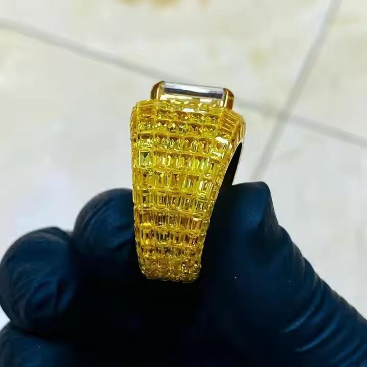 แหวนผู้ชายชุบทอง14K สีเหลืองทอง6กะรัตเพชรโมอิสซาไนท์ตัดมรกตเพชรเพชรแบบทันสมัยของขวัญเครื่องประดับงานหมั้นงานแต่งงานแนวฮิปฮอป