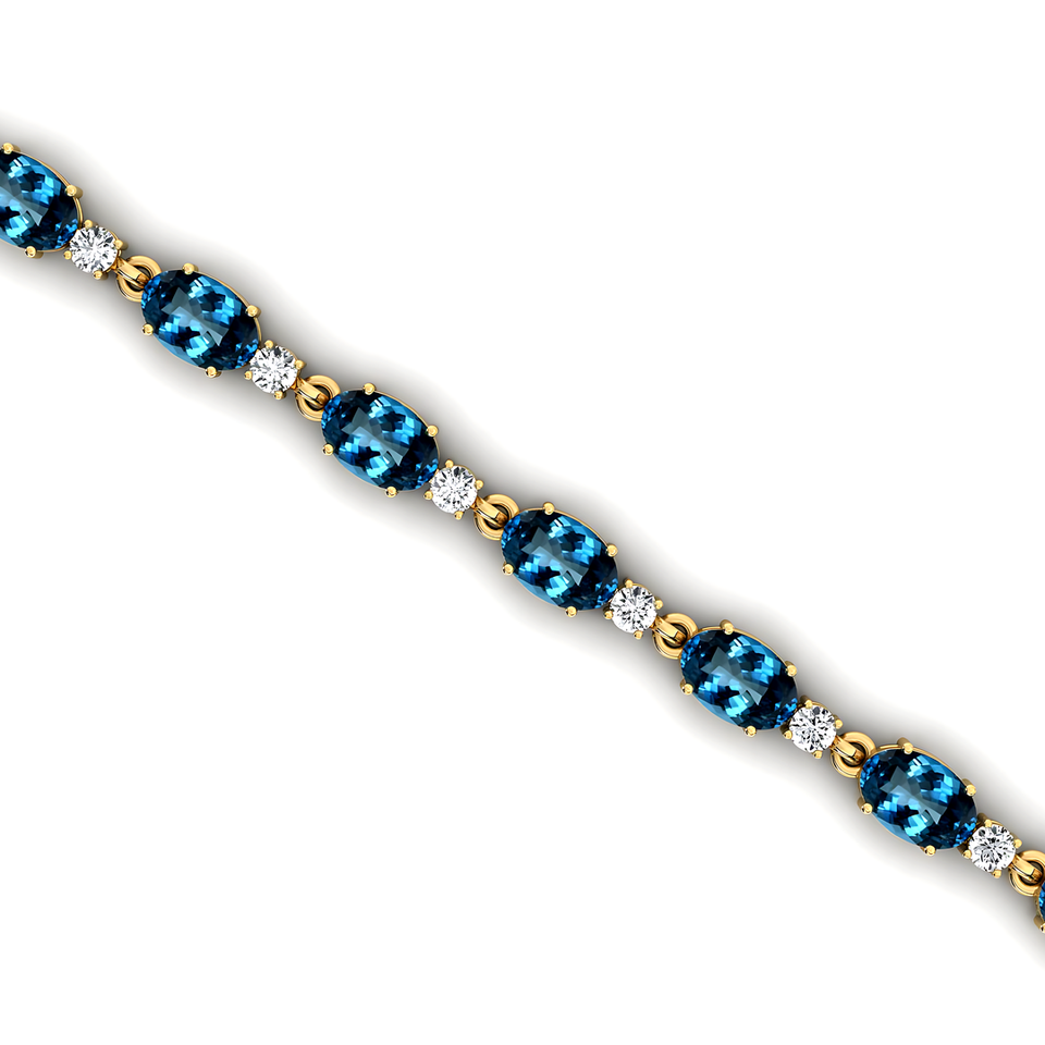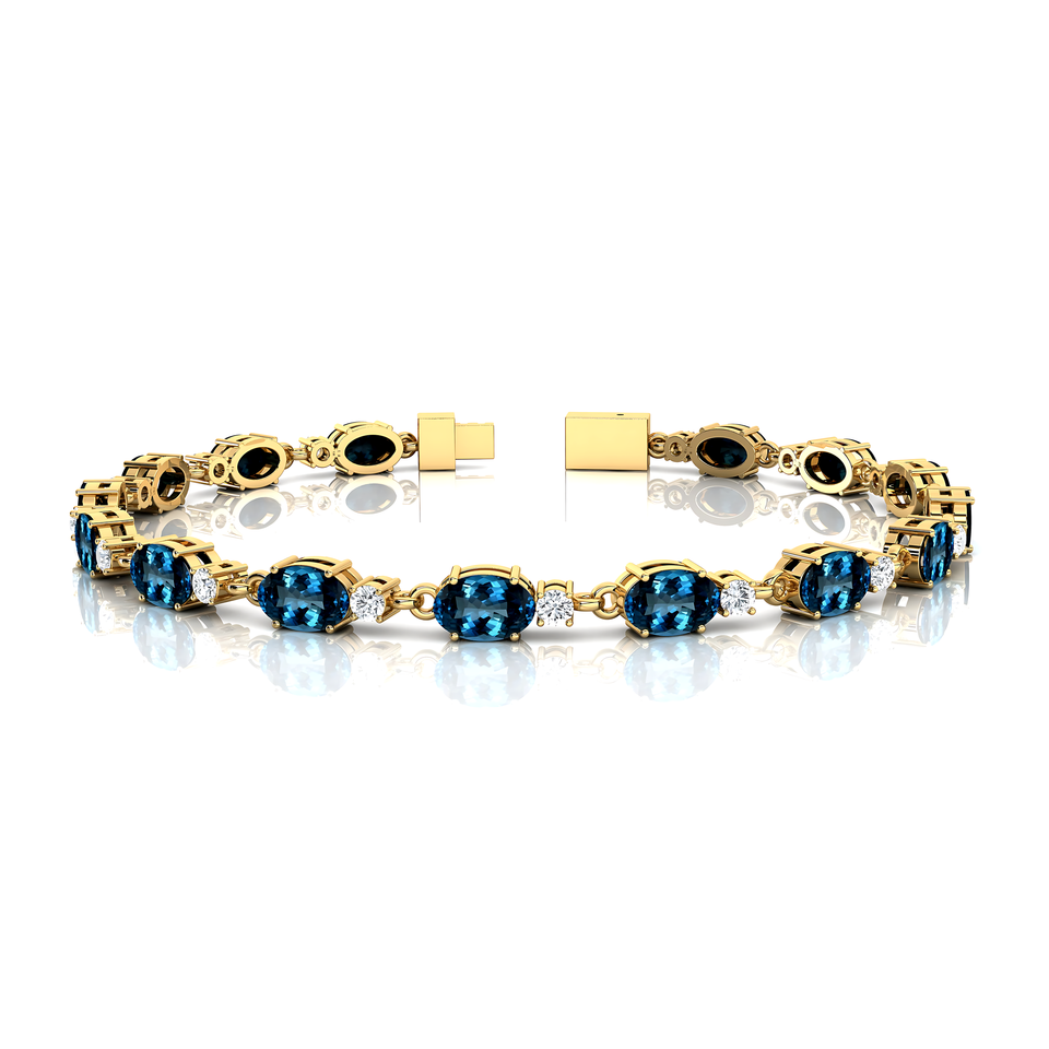 สร้อยข้อมือเทนนิส14K สีทอง2.2มม. ที่กำหนดเองเครื่องประดับคุณภาพสูงสร้อยข้อมือเทนนิสสีฟ้าบุษราคัมและเพชรแบบไม่อาศัยเพศแบบลอนดอนธรรมชาติ