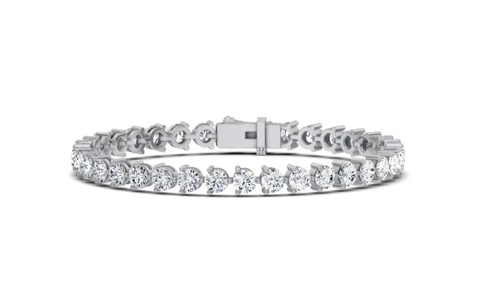 กำไลเทนนิสแบบคลาสสิกสำหรับทุกเพศ ทำจากทองคำขาว 14k ประดับเพชรแล็บทรงรี 3 กะรัต แบบ 3 ขา ขนาด 6.5 นิ้ว
