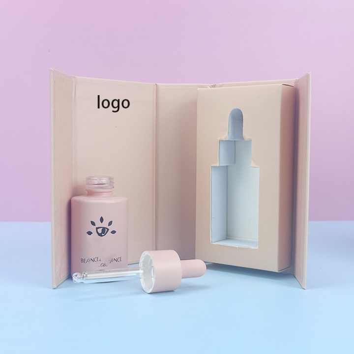 Custom 15ml 30ml 1oz Flat Shoulder pink Thick Hair Oil Serum Glass Dropper Bottle With Box for Essential Oil