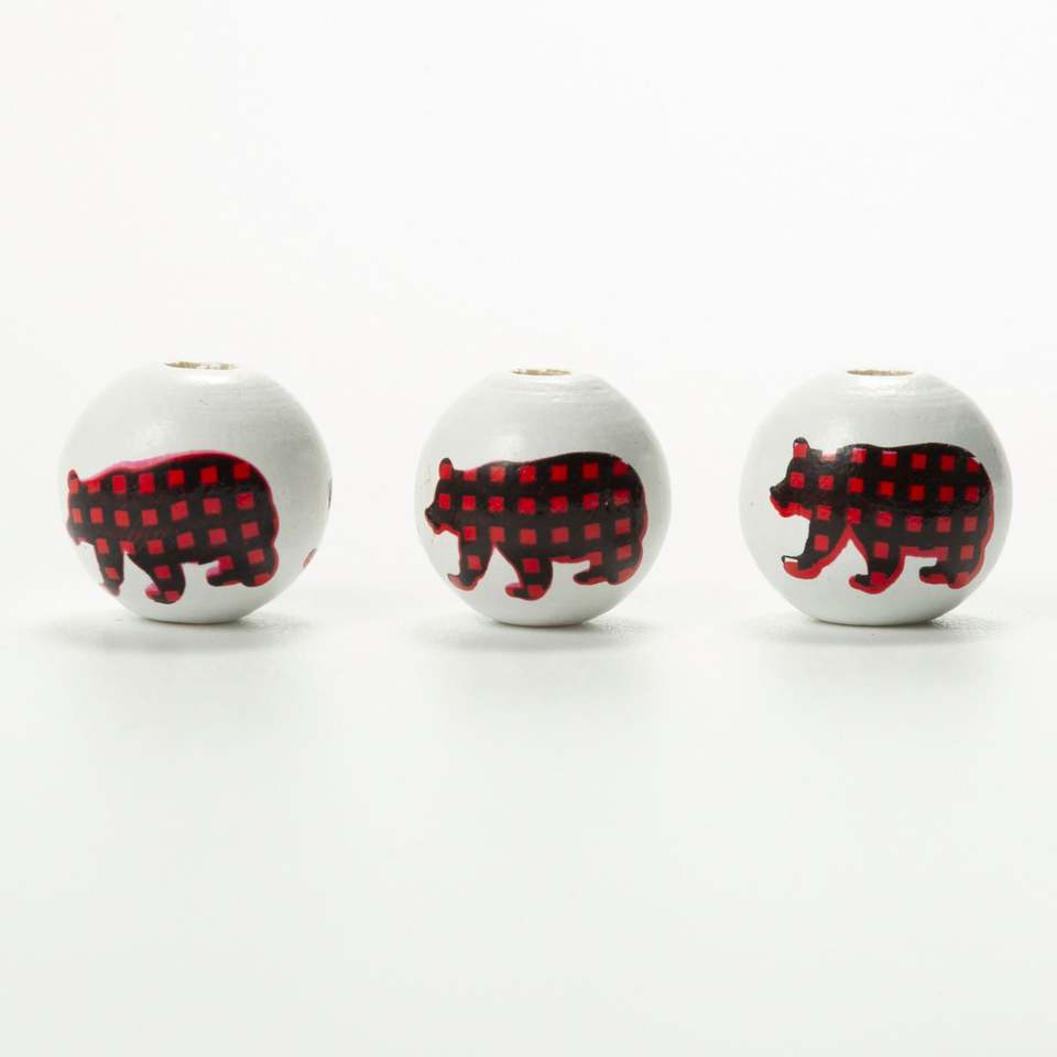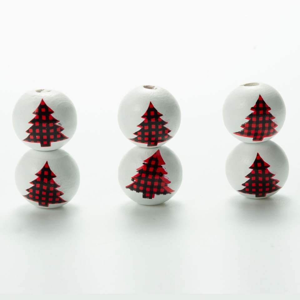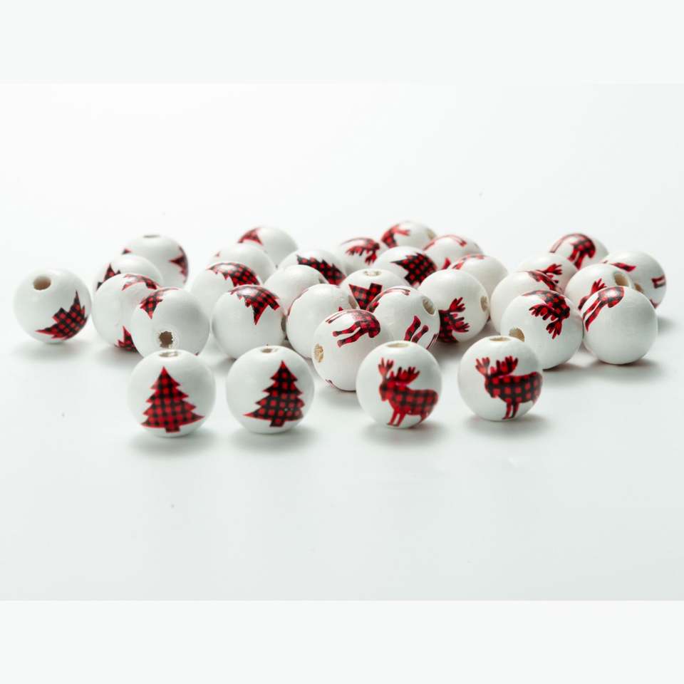ลูกปัดไม้ลายกวางเอลก์พิมพ์ลายต้นคริสต์มาสขนาด16มม. ลูกปัดไม้ทรงกลมสำหรับทำเครื่องประดับ