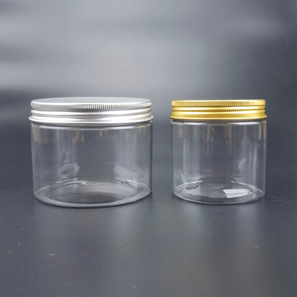 ภาชนะพลาสติกใสสำหรับเก็บอาหารขนาด 16 ออนซ์ 32 ออนซ์ 500 มล. 1000 มล. แบบกำหนดเอง ขวดใส่อาหารแบบปากกว้าง ขวด PET ใส พร้อมฝาอลูมิเนียม