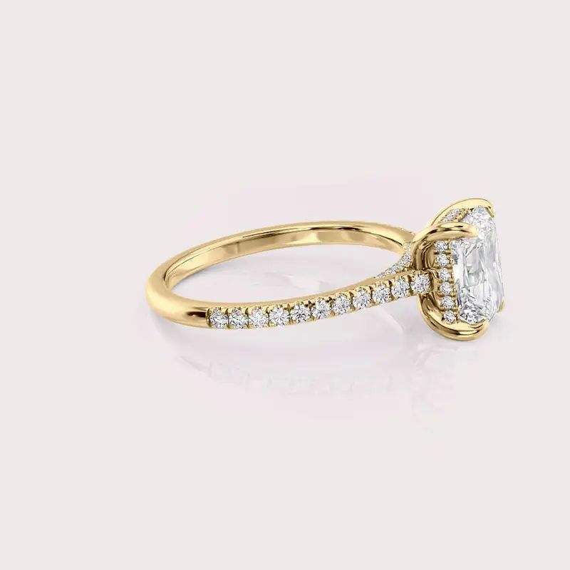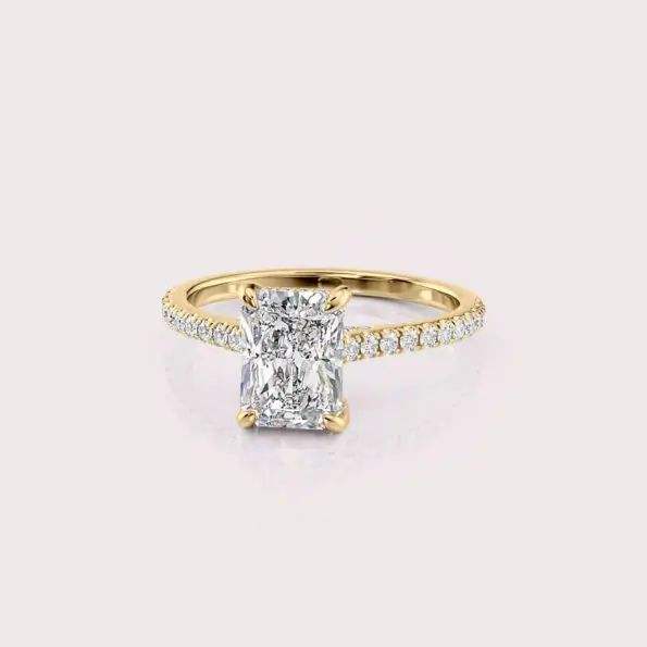 แหวนหมั้นเพชรทรงเรเดียนท์คัท เพาะเลี้ยงในห้องปฏิบัติการ ตัวเรือนทองคำ 18K สีเหลือง/ขาว/โรสโกลด์ ประดับเพชรเม็ดเดี่ยว พร้อมวงแหวนประดับเพชรแบบพาเว่