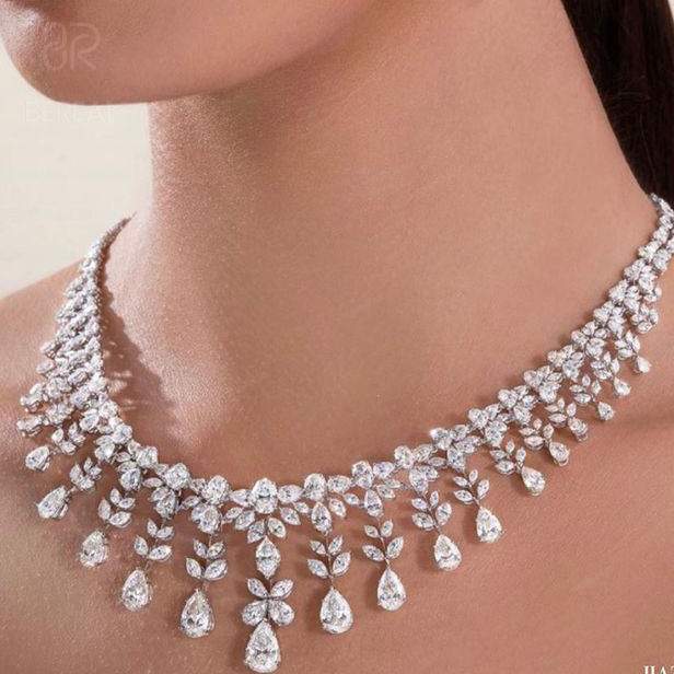 ชุดเครื่องประดับเจ้าสาว สร้อยคอแบบห้อย ต่างหู ทอง 18K ประดับเพชรโมอิสซาไนต์ VVS พร้อมสร้อยเงินแท้ 925 ประดับเพชรโมอิสซาไนต์เพาะเลี้ยงในห้องปฏิบัติการ สำหรับผู้หญิง