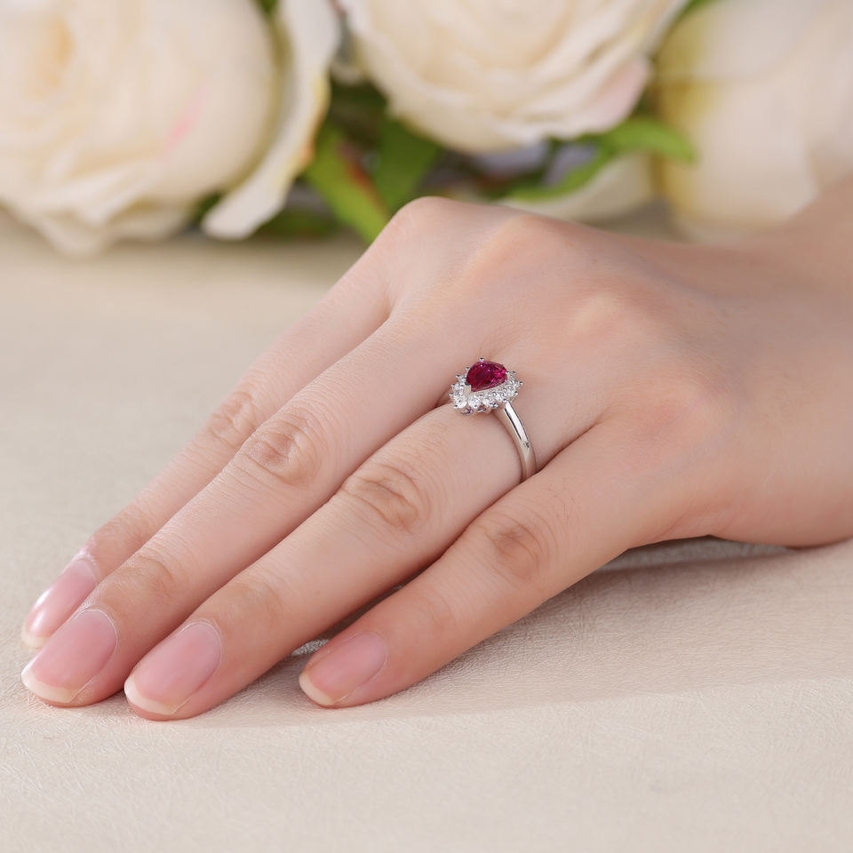 แหวนทองคำแท้ 18K ประดับพลอยทับทิมทรงหยดน้ำ 1 กะรัต ดีไซน์หรูหรา ชุบโรเดียม คลาสสิก เหมาะสำหรับเป็นของขวัญวันครบรอบแต่งงานและงานปาร์ตี้