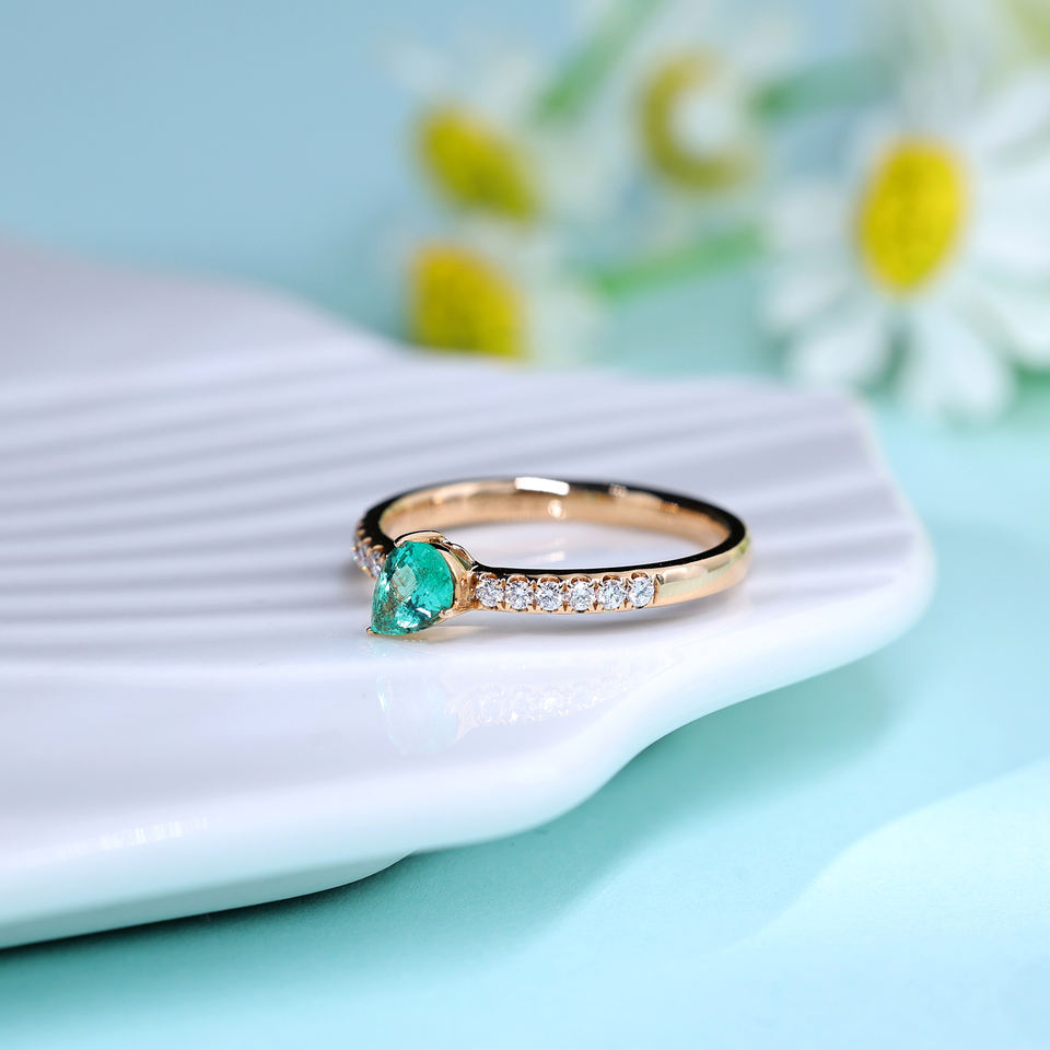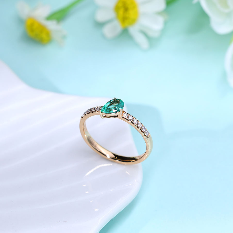 แหวนทองคำแท้ 18K ทรงหยดน้ำประดับมรกต สำหรับงานหมั้น งานแต่งงาน งานฉลองครบรอบวันแต่งงาน ของขวัญวันวาเลนไทน์สำหรับแฟนสาว
