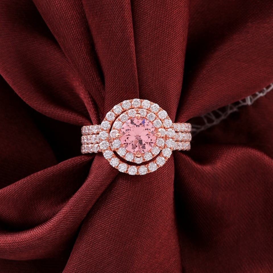 แหวนแฟชั่นทองคำแท้ 18k สีชมพู ประดับพลอยสังเคราะห์ ได้รับการรับรองจาก GRC ของขวัญวันวาเลนไทน์สำหรับผู้หญิง
