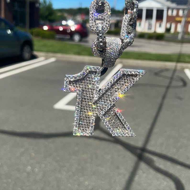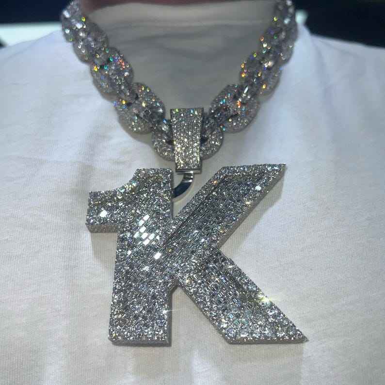 จี้เพชรโมอิสซาไนต์ 1 กะรัต แบบกำหนดเอง พร้อมตัวอักษรย่อสุดหรู เงินแท้ 925 ชุบโรเดียม ประดับเพชรแบบฮิปฮอป พร้อมสร้อยคิวบาลิงค์