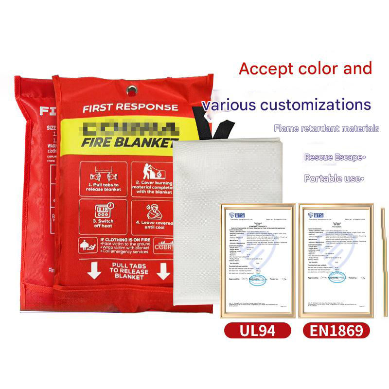 ผ้าห่มกันไฟไฟเบอร์กลาส ขนาด 1x1 เมตร ทนความร้อน ได้รับการรับรองมาตรฐาน EN1869 สำหรับใช้ในบ้าน ป้องกันอัคคีภัยฉุกเฉิน ไม่มีรูร้อยเชือก ขนาด 6 ฟุต
