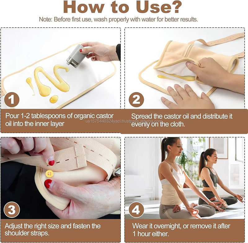 ชุดแพ็คน้ำมันละหุ่ง2แพ็คชุดน้ำมันละหุ่งออร์แกนิกแบบปรับได้ใช้ซ้ำได้สำหรับดีท็อกซ์ตับพร้อมสายรัดยืดหยุ่นป้องกันการรั่ว