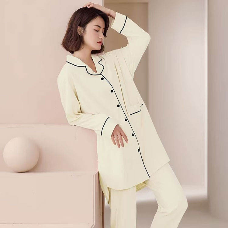 ชุดนอนผ้าฝ้ายซี่โครง2ชิ้นสำหรับผู้หญิงชุดนอนดีไซน์สวยสำหรับใส่นอน