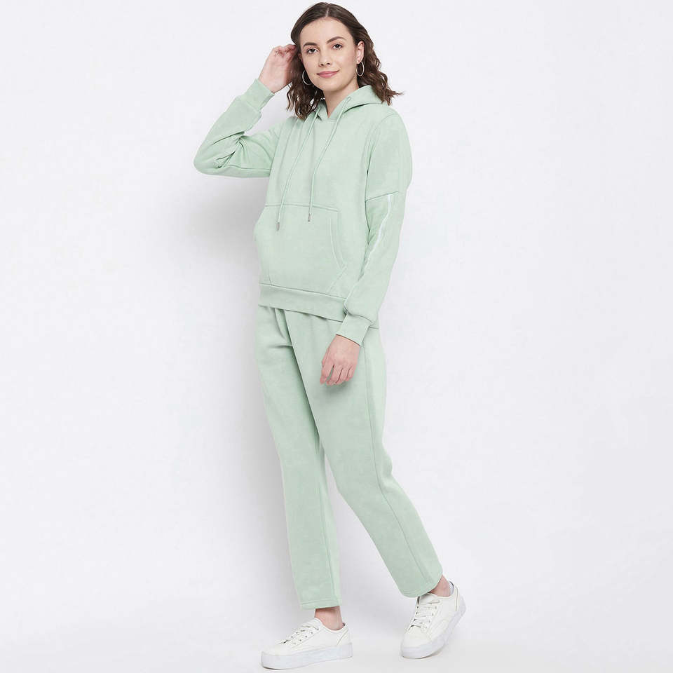 ชุดวอร์ม2ชิ้นสำหรับผู้หญิงชุดครอปแบบมีฮู้ดและกางเกงวอร์มแต่งซิปลายปัก