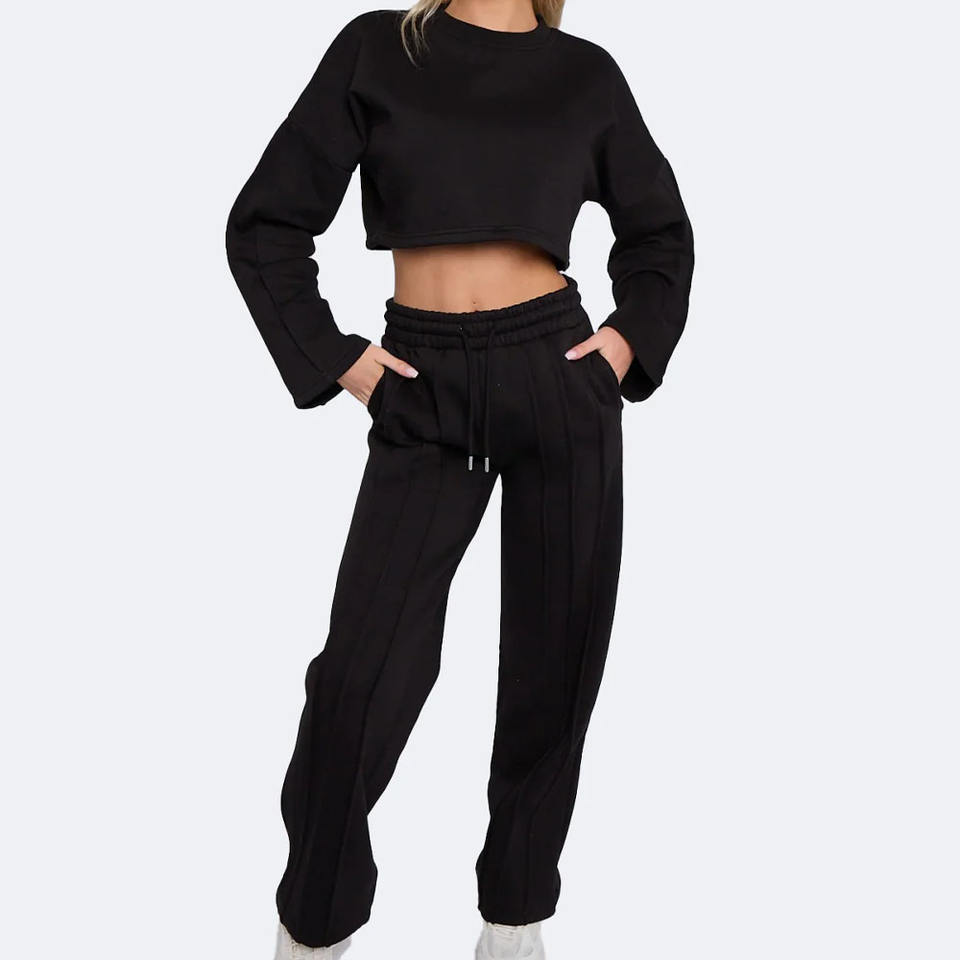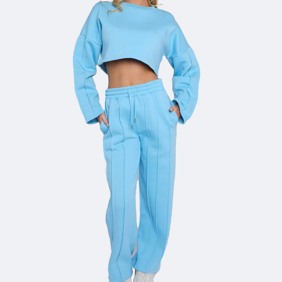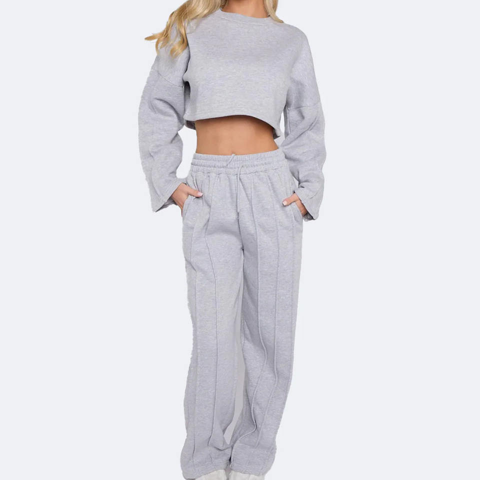เซต2ชิ้นสำหรับผู้หญิงเสื้อครอปแบบมีฮู้ดปักลายและกางเกงวอร์มขายาวแบบสั้น2026สำหรับฤดูหนาว