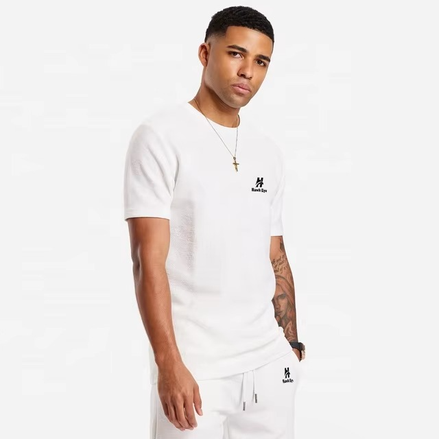 ชุดเสื้อผ้าถักนิตติ้งแนววินเทจสำหรับผู้ชาย-เสื้อยืดแขนสั้นและกางเกงขาสั้นซับเหงื่อ2ชิ้นตามสั่งฤดูร้อน