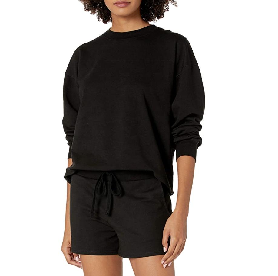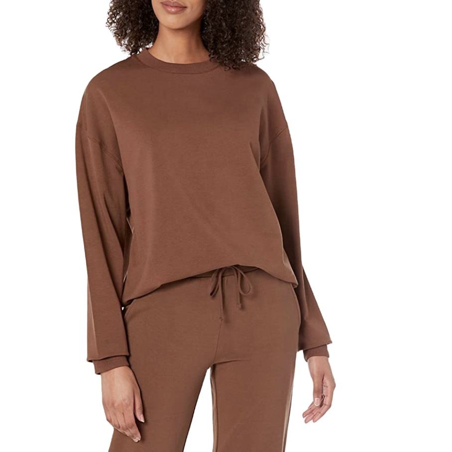 ชุดเสื้อผ้า2ชิ้นสำหรับผู้หญิงชุดเสื้อสเวตเตอร์คอกลมกางเกงวิ่งกางเกงขายาว2ชิ้นไหล่2026