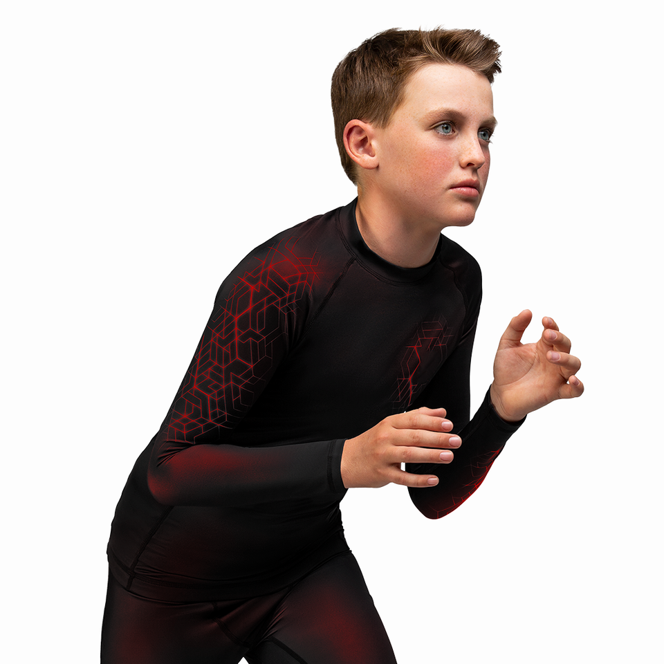 ชุดป้องกันผดผื่นสำหรับเด็กชุดกิโมโน Jitsu Jitsu Jitsu ชุดป้องกันรังสียูวีแบบ2025สีดำแดงตามสั่ง