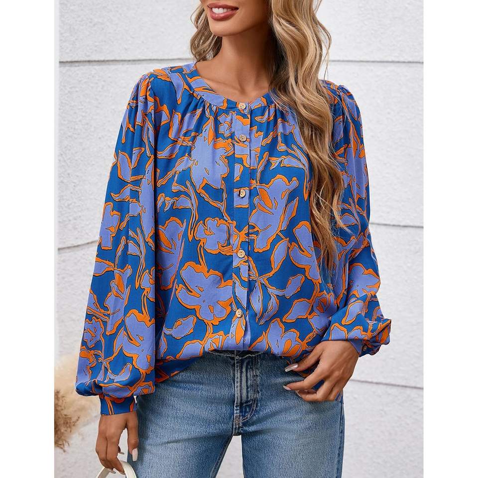 เสื้อเบลาส์มีกระดุมลายดอกไม้สำหรับผู้หญิงเสื้อเชิ้ตผ้าทอแขนยาวขนาดใหญ่พิเศษสไตล์ลำลอง2025ฤดูใบไม้ร่วง