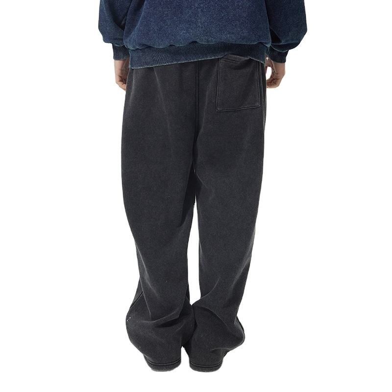 กางเกงสเวตเตอร์ผ้าฝ้าย320กรัมของผู้ชายขาตรงขากว้างแบบแบนด้านหน้าเรียบผ้าแคนวาสแบบแห้งเร็วกำหนดได้2025เอง