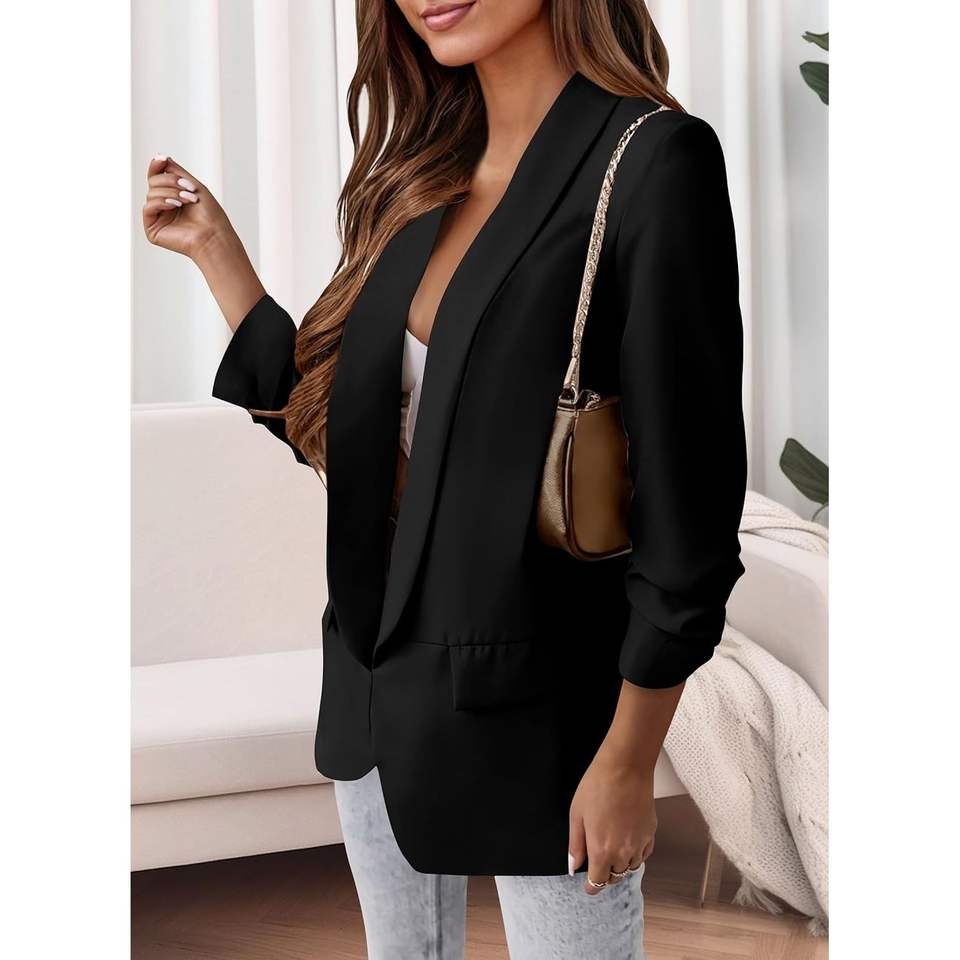 เสื้อเบลเซอร์ลำลองผู้หญิง คอลเลคชั่นฤดูใบไม้ผลิ/ฤดูใบไม้ร่วง ปี 2025 แขนยาว ทรงเปิดด้านหน้า เหมาะสำหรับใส่ทำงานในออฟฟิศ แบบกระดุมสองแถว ลายพิมพ์