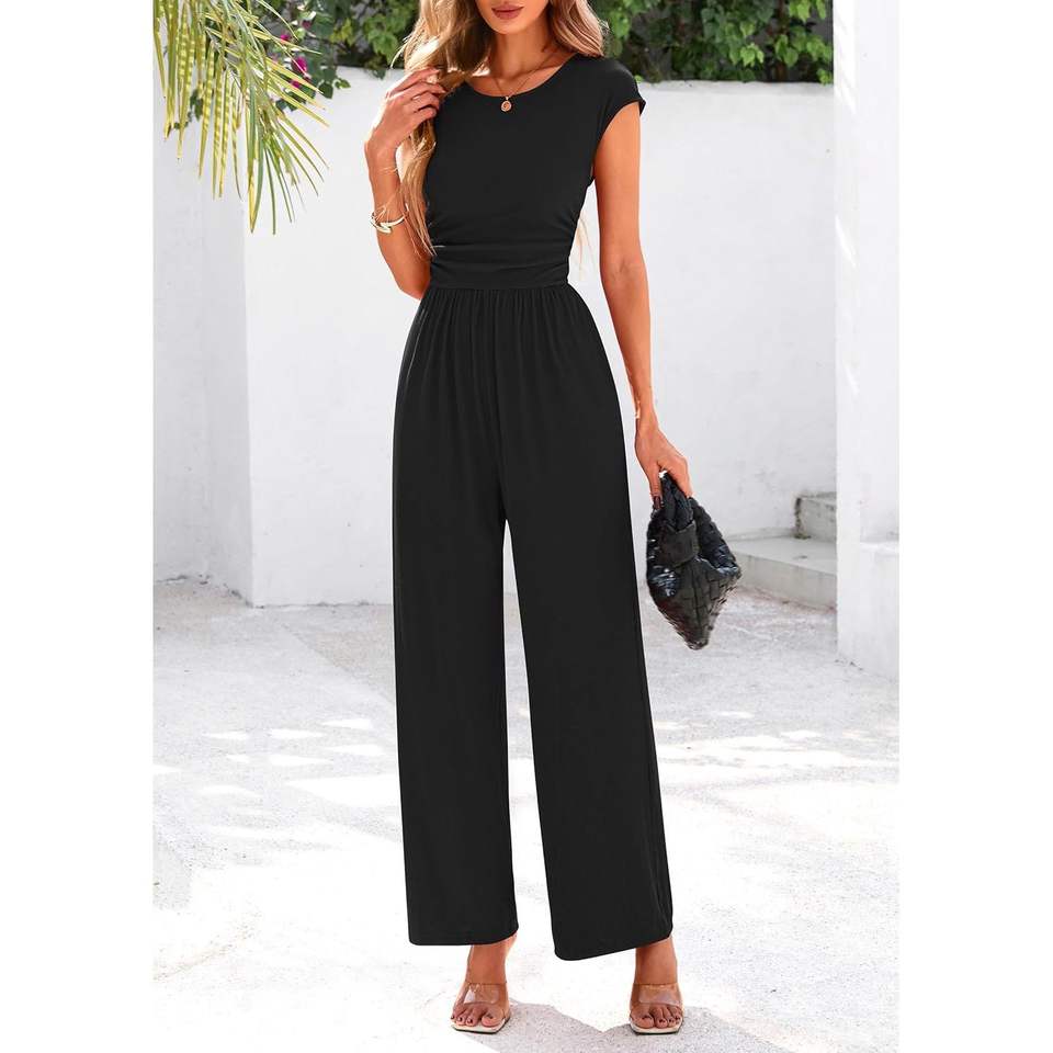 จั๊มสูทฤดูร้อนปี 2025 แบบสั่งทำพิเศษสำหรับผู้หญิง ชุดลำลองแบบชิ้นเดียวสุดหรู ไซส์ XS แขนสั้นแบบรัดรูป กางเกงขายาวทรงกว้าง ชุดรอมเปอร์แบบเป็นทางการ