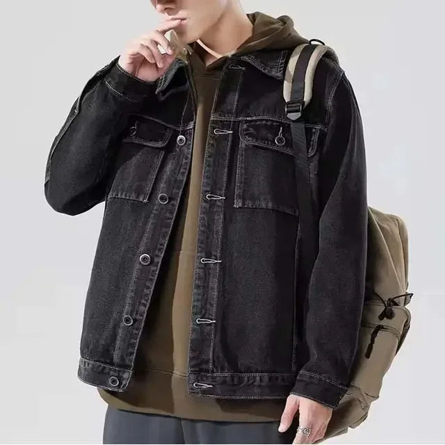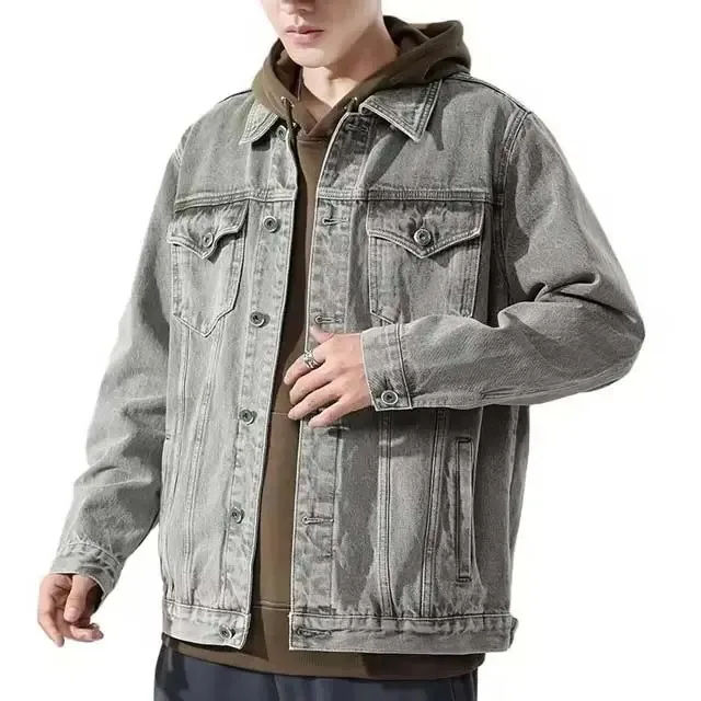 แจ็คเก็ตเดนิมผ้าฝ้ายคุณภาพสูงสำหรับผู้ชาย รุ่นคัสตอม 2025 สำหรับฤดูหนาว ขายส่ง สไตล์ไฮสตรีท มีฮู้ด กันลม ระบายอากาศได้ดี