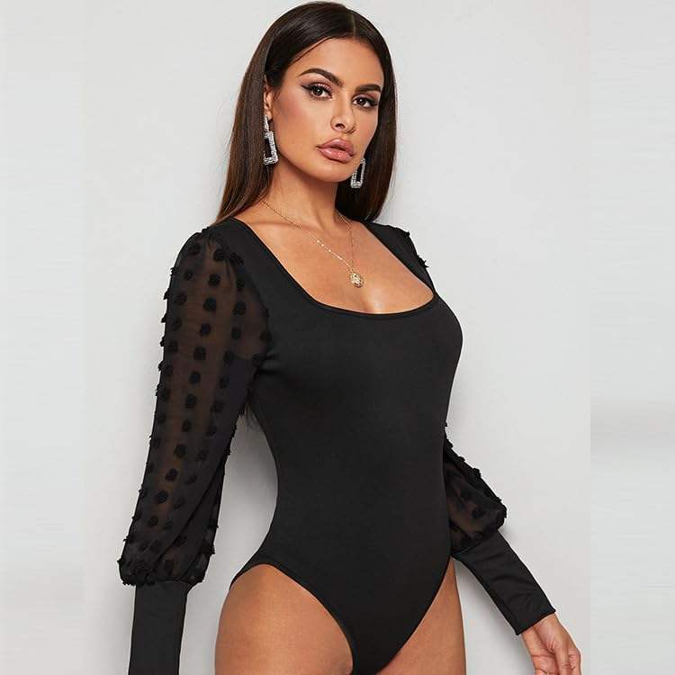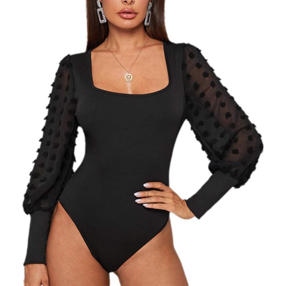 ชุดกระชับสัดส่วนสีดำแบบสั่งทำพิเศษ ปี 2026 สำหรับผู้หญิง แขนยาว คอเหลี่ยม ผ้าตาข่าย ไร้รอยต่อ แต่งระบาย ใส่ได้ทุกวัน