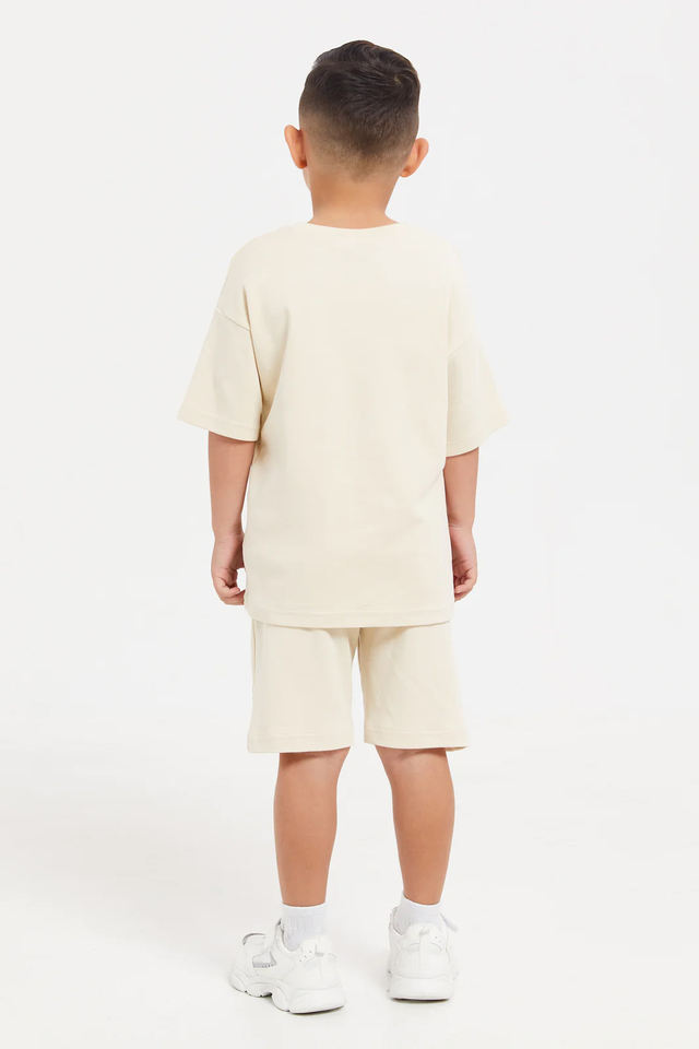 เสื้อผ้าเด็กผู้ชายฤดูร้อนปี 2026 แบบกำหนดเอง ขายส่งเสื้อยืดและกางเกงขาสั้นผ้าฝ้ายแท้สองชิ้น ชุดเสื้อผ้าเด็ก