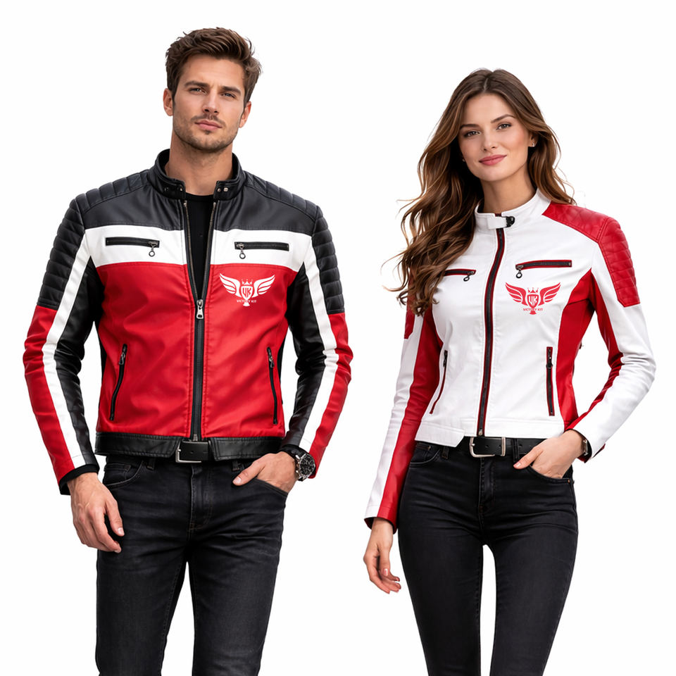 แจ็คเก็ตหนังไบค์เกอร์แบบสั่งทำพิเศษ ปี 2026 สำหรับผู้ชายและผู้หญิง แจ็คเก็ตสำหรับขี่มอเตอร์ไซค์สีแดงดำ ทรงเข้ารูป แจ็คเก็ตมอเตอร์ไซค์ OEM เสื้อผ้าสตรีทแวร์