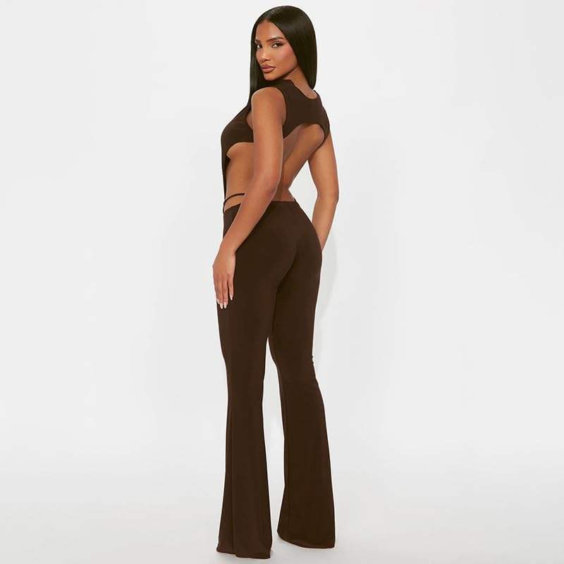 Custom 2026 Sexy 2 Piece Outfit Off The Shoulder Bodysuit Bodycon Flare Pants Set Cut Out Club Dress Women's Fashion