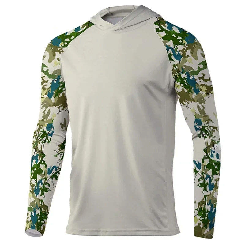 เสื้อตกปลาพิมพ์ลายแฟชั่นปี 2026 ระบายอากาศได้ดี แขนยาว แห้งเร็ว มีฮู้ด ป้องกันแสงแดด UPF 50 สำหรับเล่นกีฬาตกปลา