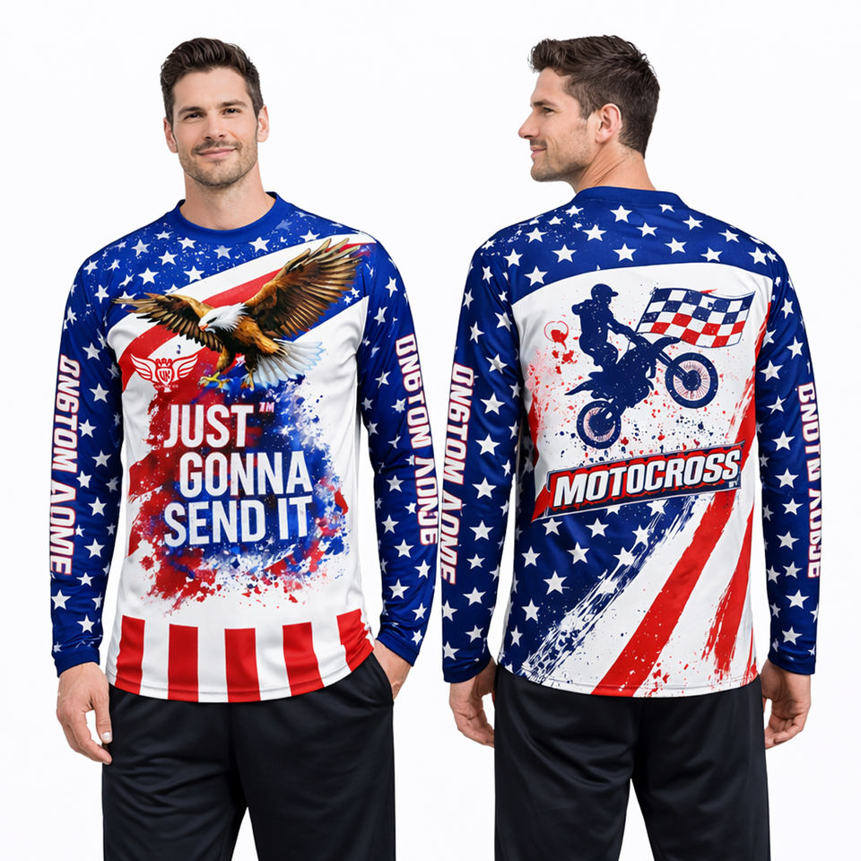 เสื้อเจอร์ซีย์มอเตอร์ครอสแบบกำหนดเองปี 2026 สหรัฐอเมริกา OEM เสื้อแข่งรถวิบากลายธงชาติอเมริกันสำหรับผู้ชาย แขนยาว MX ออฟโรด เอนดูโร่ ATV มอเตอร์ไซค์