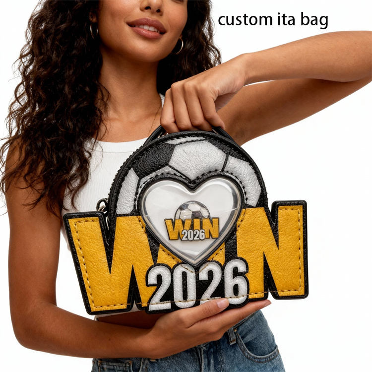 กระเป๋าถือทรงลูกฟุตบอล Custom 2026 WIN รุ่น Ita Bag ทำจากวัสดุ PU พร้อมหน้าต่างรูปหัวใจ ดีไซน์เก๋ไก๋สำหรับแฟนบอล เหมาะสำหรับผู้หญิงและผู้ชาย