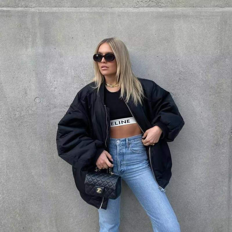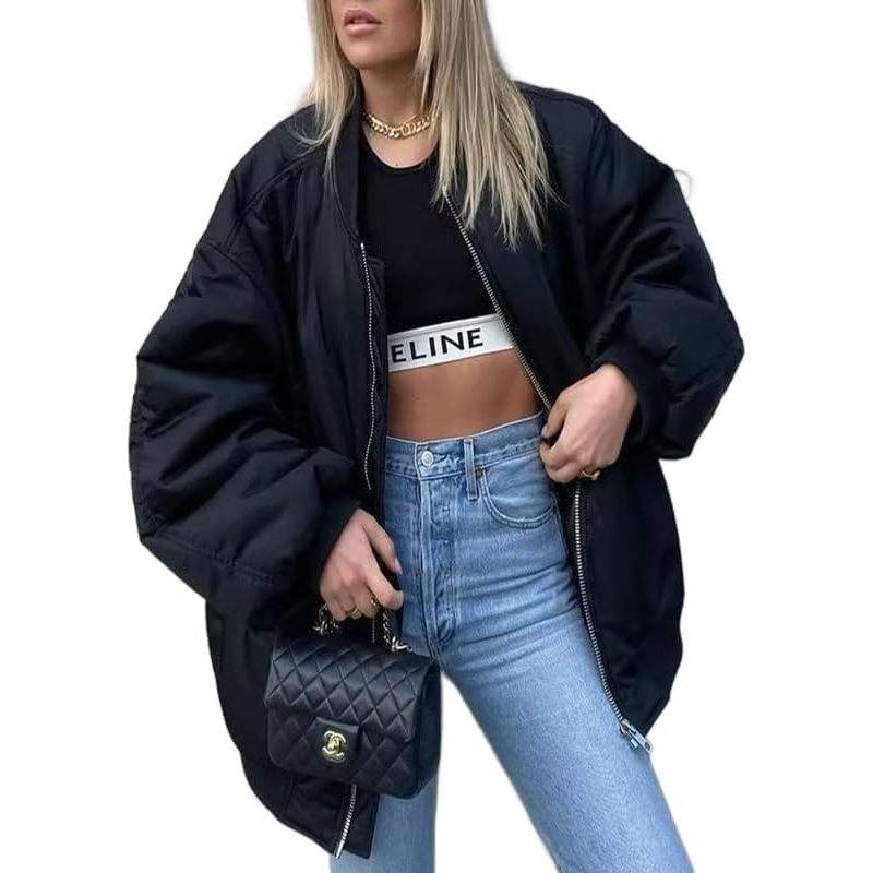 เสื้อแจ็คเก็ตบอมเบอร์ผู้หญิงแบบสั่งทำพิเศษ ปี 2026 แขนยาว ซิปเต็มตัว ทรงโอเวอร์ไซส์ บุหนา อุ่นสำหรับฤดูหนาว กันลม คอปกพับได้