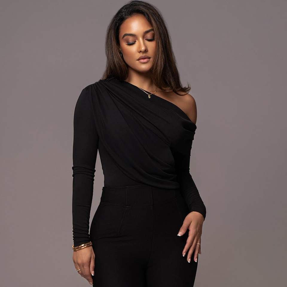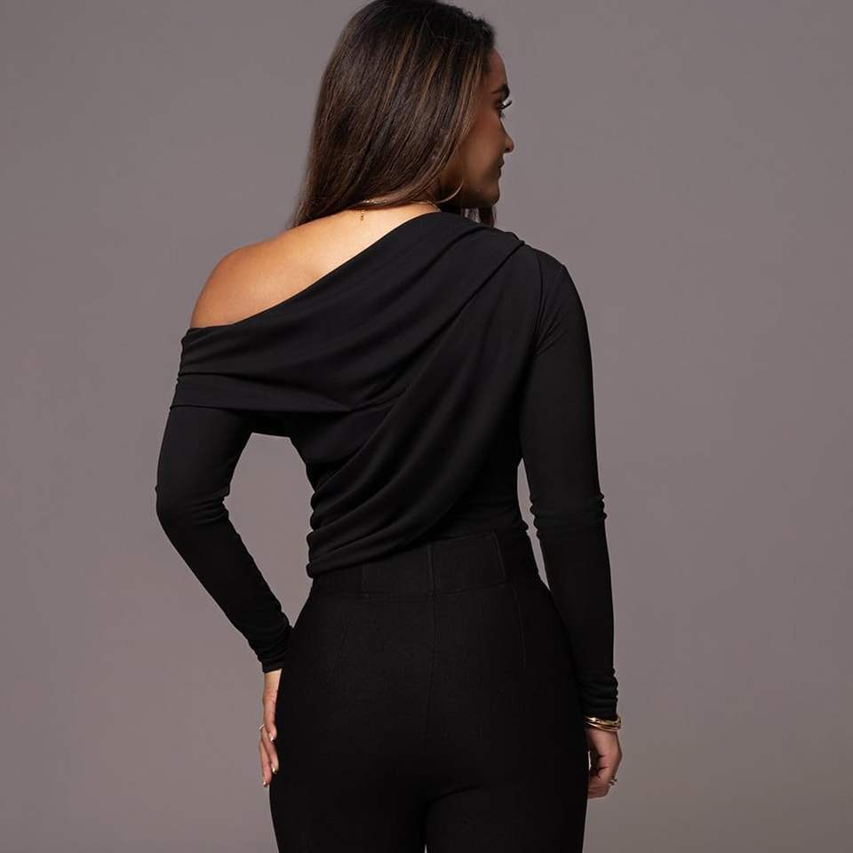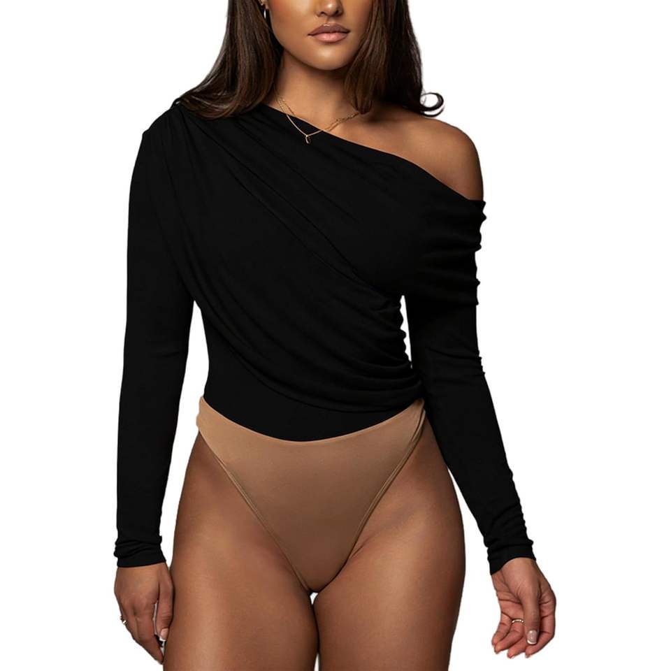 ชุดบอดี้สูทผู้หญิงแบบไหล่เดียว รุ่นคัสตอม 2026 ผ้ารัดรูปยืดหยุ่น ทอแบบถัก แขนยาว สไตล์สตรีทแวร์