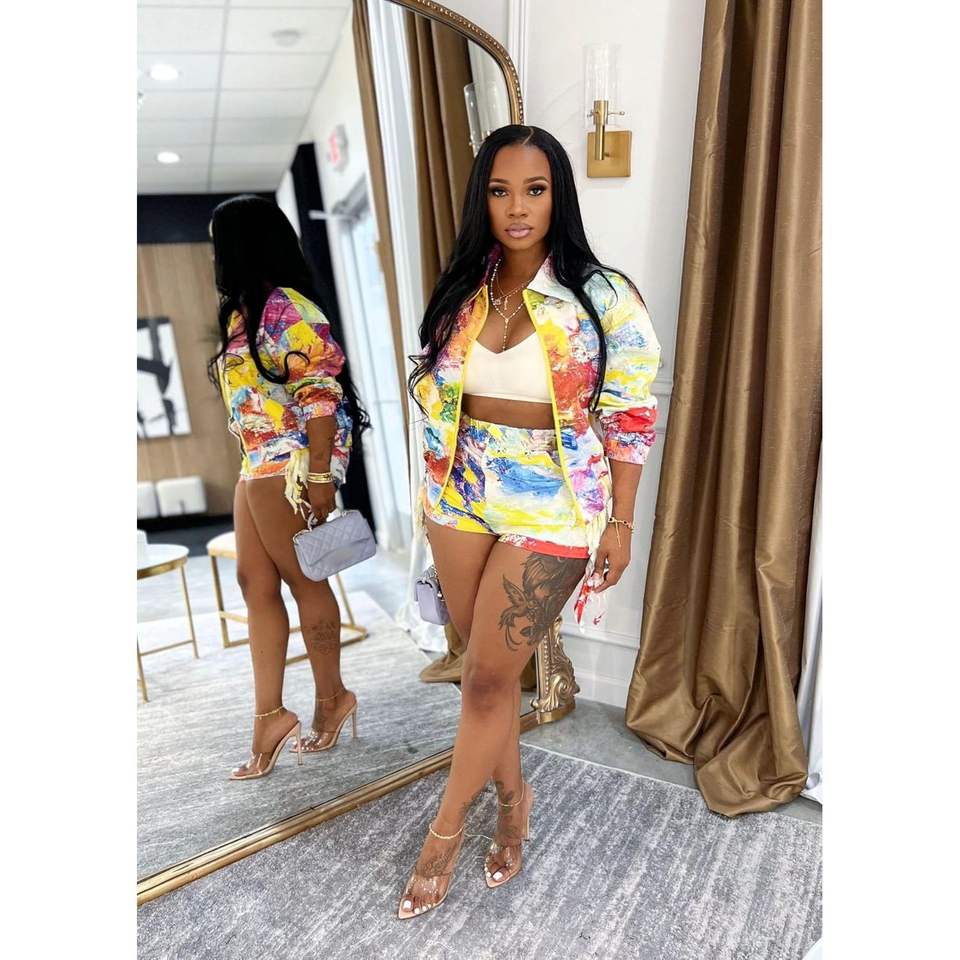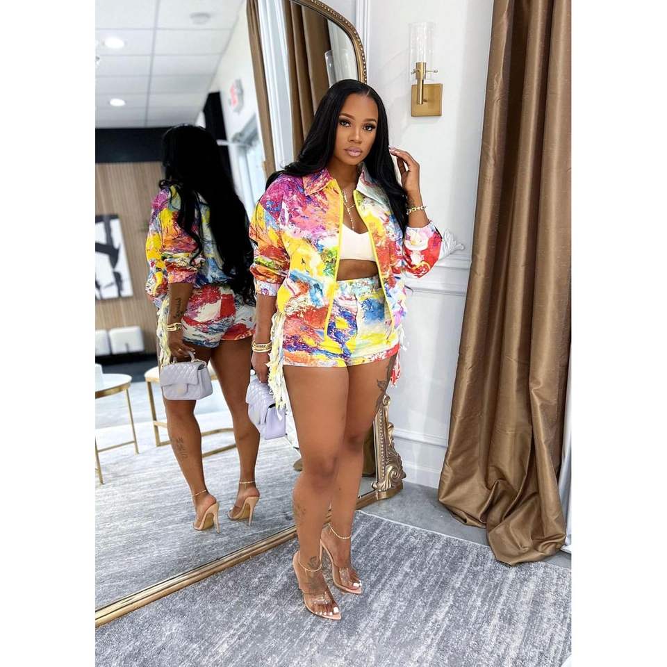 Custom 2026 Women's Two Piece Set Printed Blazer Coat With Shorts Three Quarter Sleeve Zipper Breathable Fall Outfits