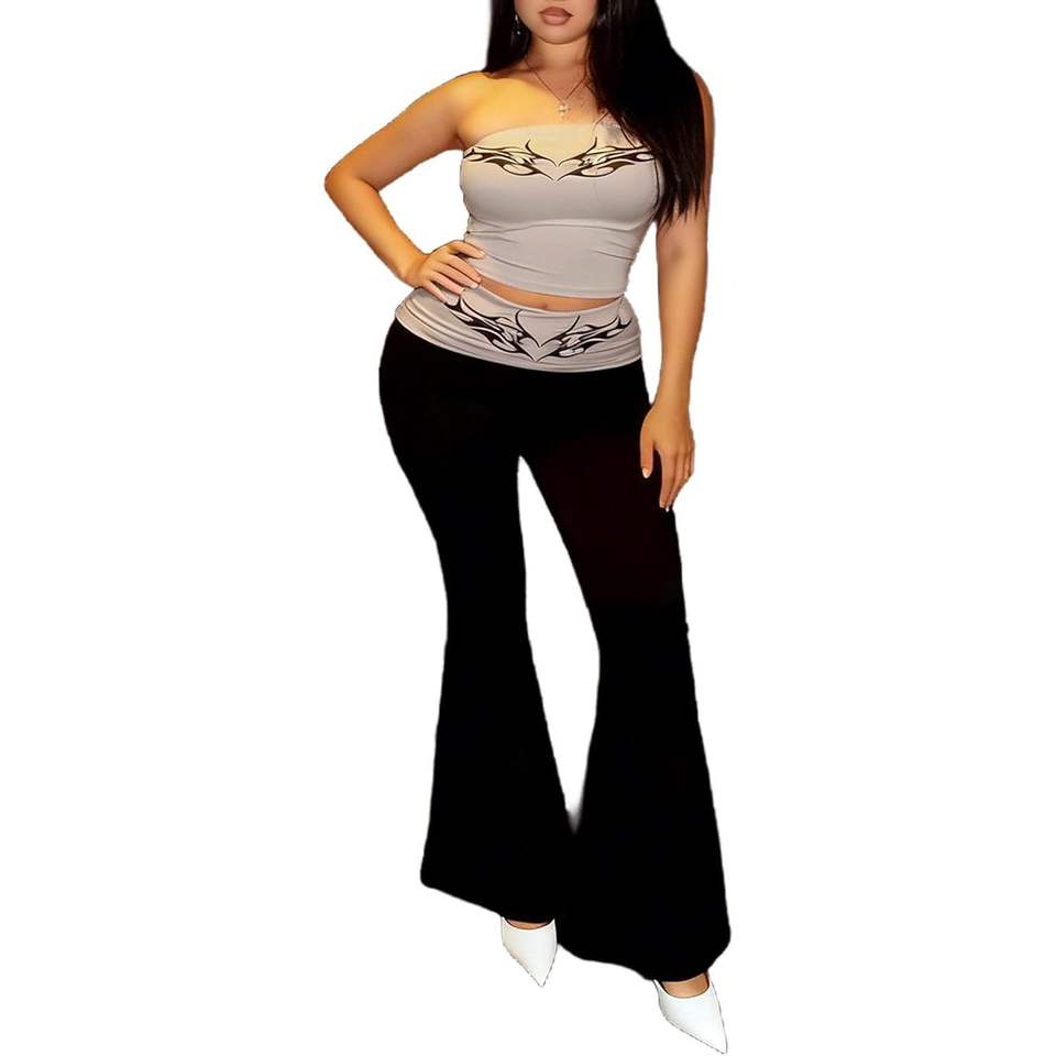 ชุดลำลองผู้หญิงแบบสองชิ้น คอลเลคชั่น 2026 เสื้อเปิดไหล่และกางเกงขายาว ลายพิมพ์ ชุดลำลองใส่สบาย ระบายอากาศได้ดี ผลิตจากผ้าสแปนเด็กซ์และโพลีเอสเตอร์