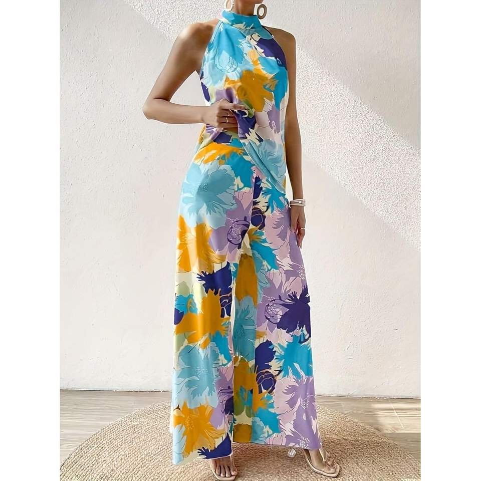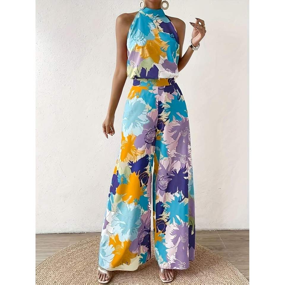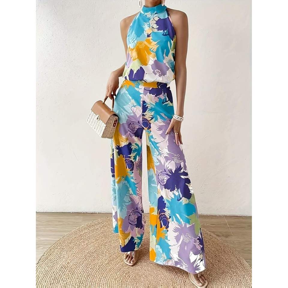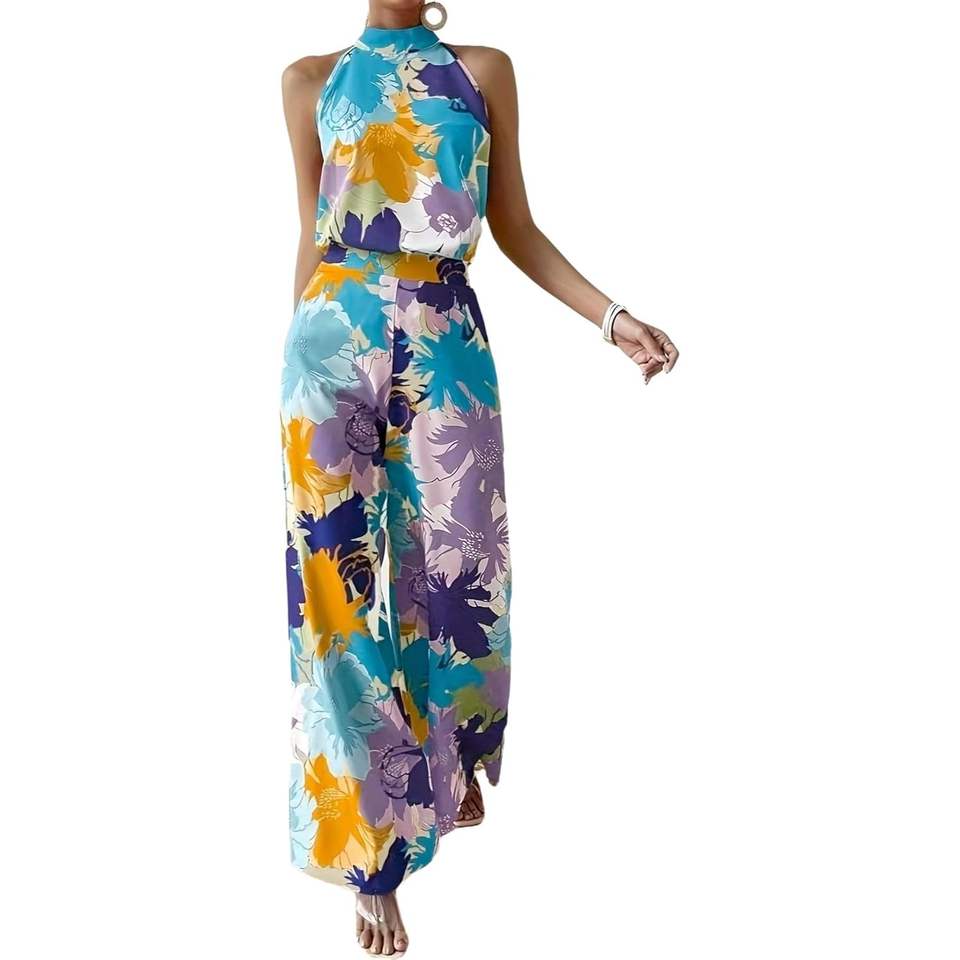 ชุดเซ็ต 2 ชิ้นสำหรับผู้หญิง รุ่นคัสตอม 2026 เสื้อแขนกุดแบบผูกคอ กางเกงขายาวเอวสูงทรงตรง ผ้าชีฟอง สวมใส่สบายๆ สำหรับฤดูใบไม้ผลิและฤดูร้อน ระบายอากาศได้ดี