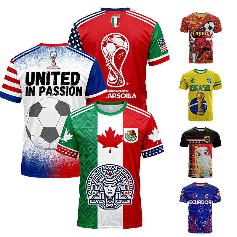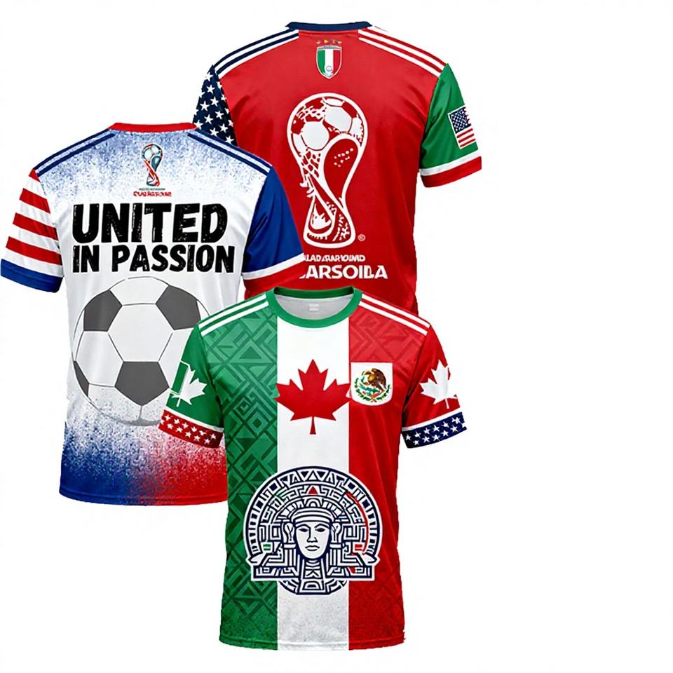 เสื้อยืดฟลีซลำลองทรงโอเวอร์ไซส์ คอกลม แขนปกติ พิมพ์ลายดิจิตอล 3 มิติ ระบายอากาศได้ดี 100% สำหรับผู้ชาย รุ่นฟุตบอลโลก 2026 แบบสั่งทำพิเศษ
