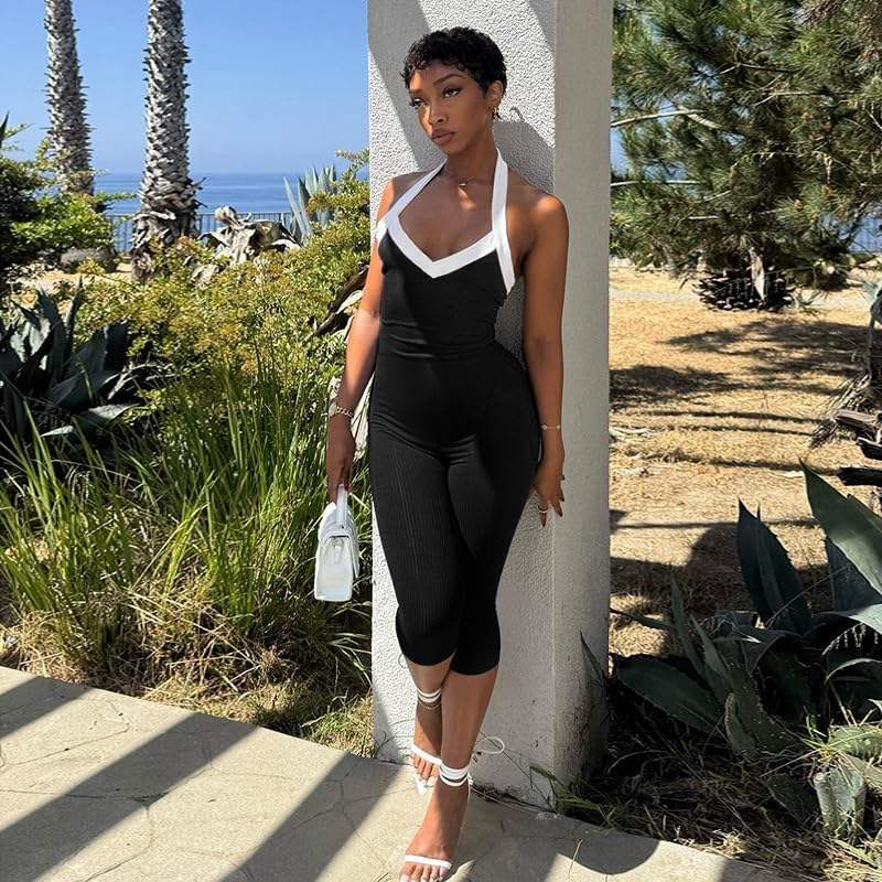 จั๊มสูทผู้หญิงแบบสั่งทำพิเศษ รุ่นปี 2026 เอวสูง แขนกุด คอวี ทรงเข้ารูป ชุดถักนิตติ้งสำหรับงานปาร์ตี้