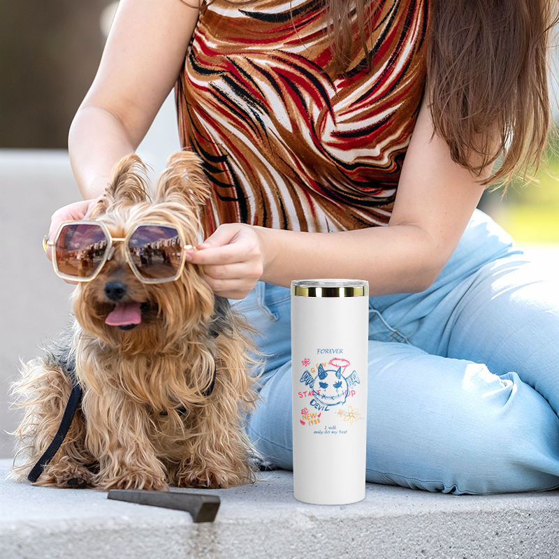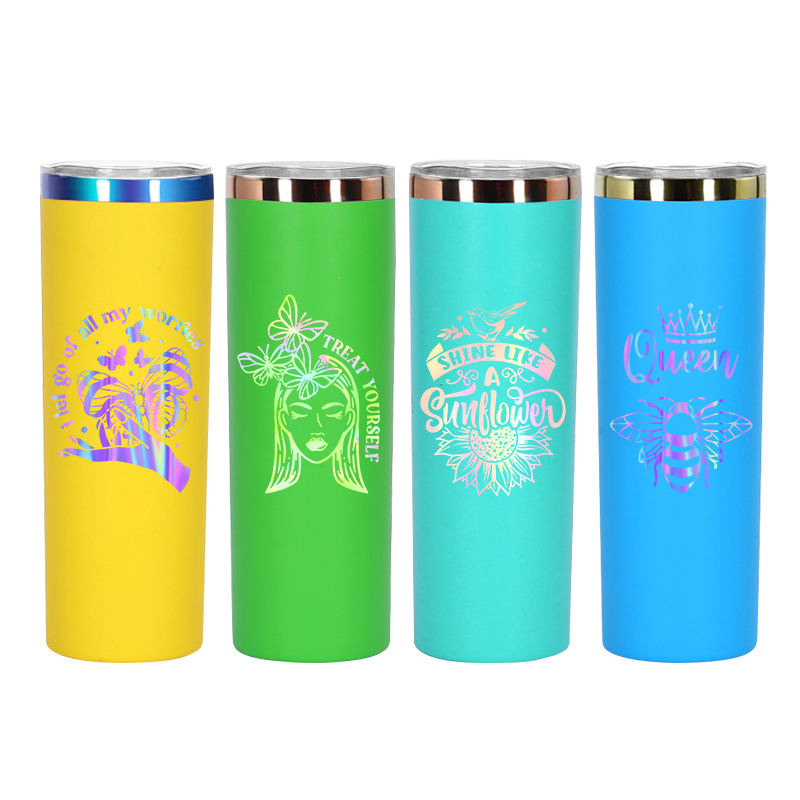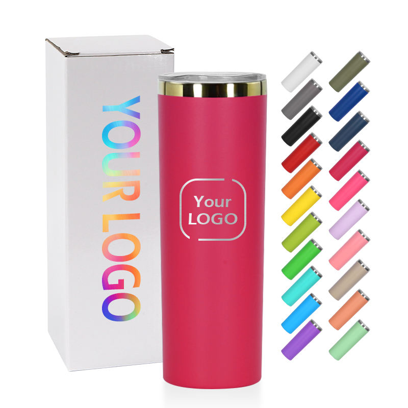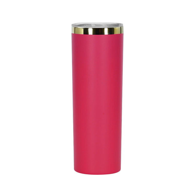 แก้วน้ำทรงตรงแบบสกินนี่ ขนาด 20 ออนซ์ ชุบทองแดง ผลิตจากสแตนเลสเคลือบผงสีทองแดงด้านล่าง พร้อมฝาปิดแบบเลื่อน