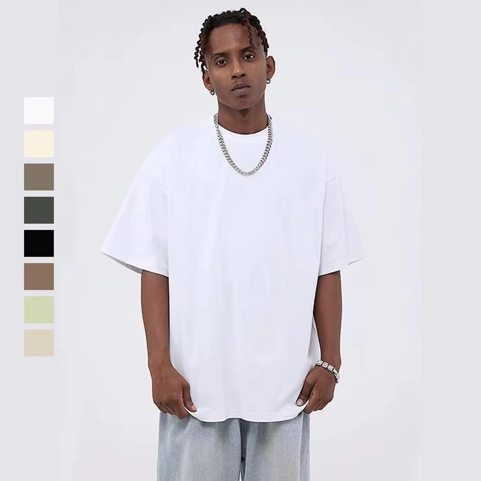 เสื้อยืดโอเวอร์ไซส์ผ้าคอตตอน 100% หนัก 220 กรัม สำหรับผู้ชาย ทรงไหล่ตก พิมพ์ลาย ถักทอคุณภาพสูง เสื้อยืดเปล่าเรียบๆ