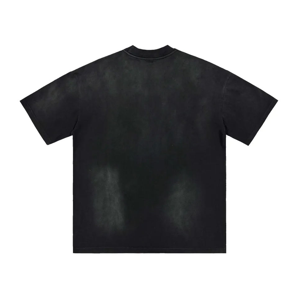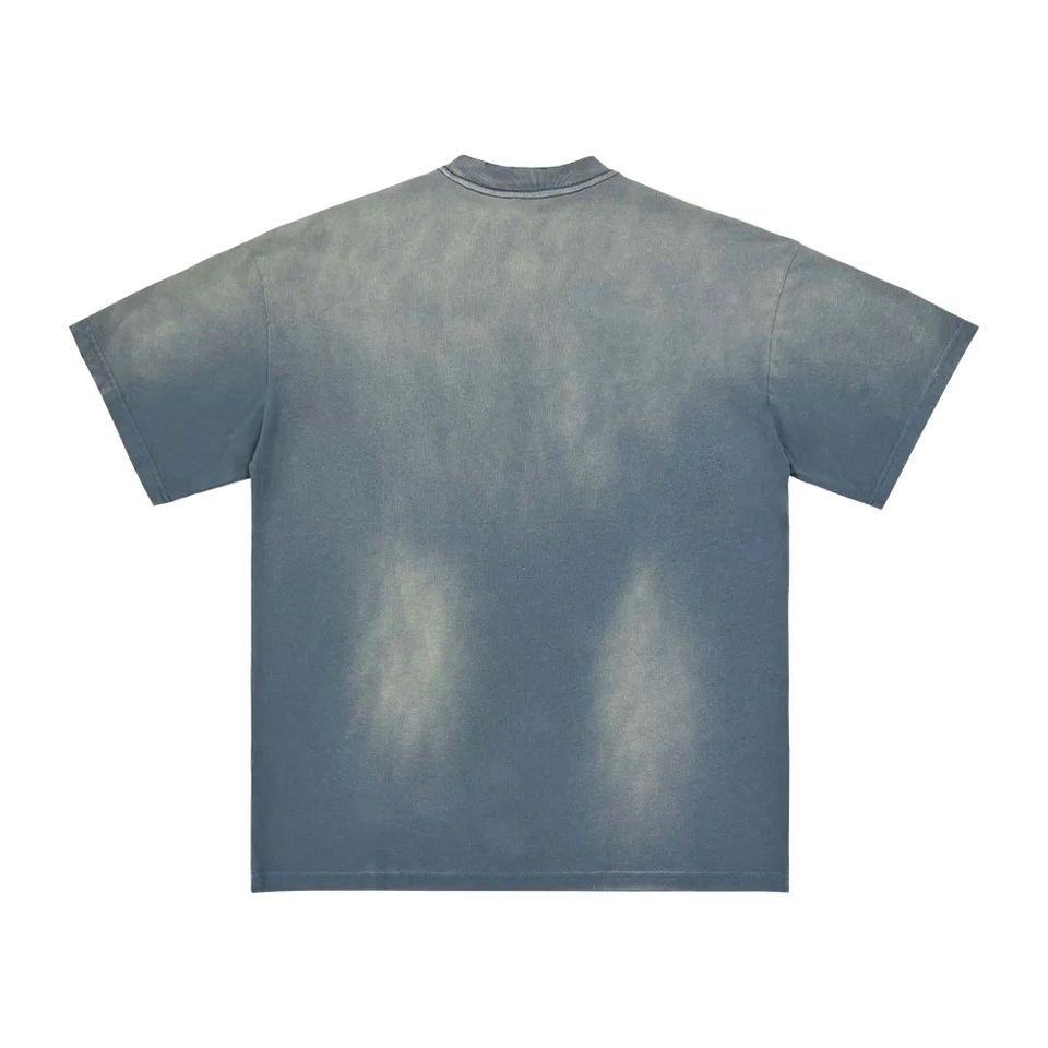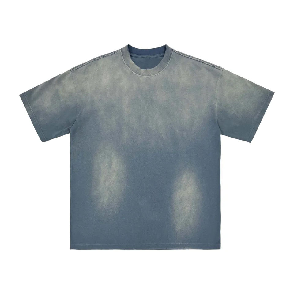 เสื้อยืดผู้ชายทรงโอเวอร์ไซส์ ผ้าฝ้าย 100% หนัก 230 กรัม ป้องกันรอยยับ ระบายอากาศได้ดี สีซีดแบบวินเทจ ล้างสีด้วยกรด