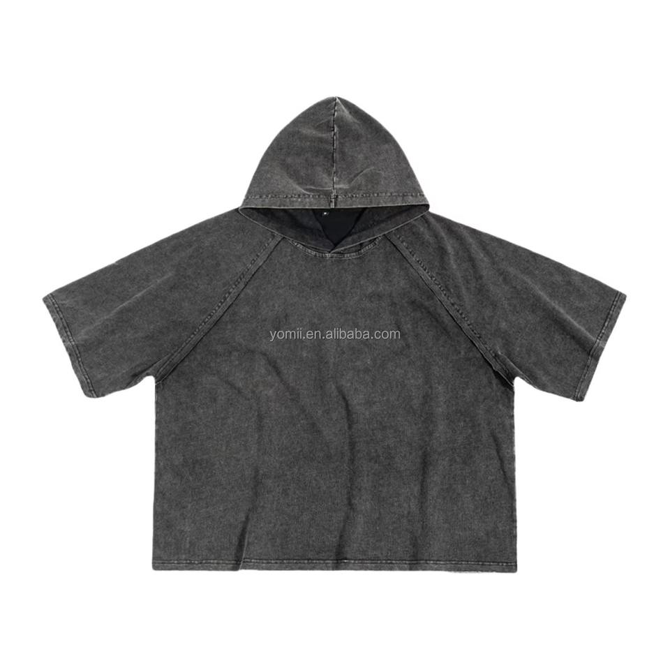 เสื้อฮู้ดแบบสวมหัวแขนสั้นโอเวอร์ไซส์ผ้าคอตตอน100% เป็นมิตรกับสิ่งแวดล้อมผ้าคอตตอนผ้าดิบกำหนดเอง240gsm