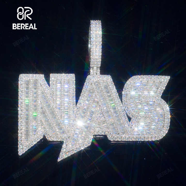 จี้ชื่อ VVS Moissanite ขนาด3นิ้วตามสั่งจี้เพชรผ่านเครื่องทดสอบเพชรเจียระไนเพชรมรกต925เงินจี้ชั้นดี
