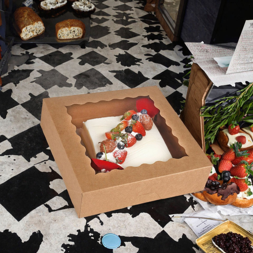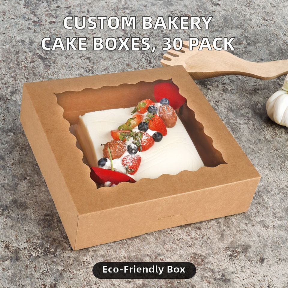 กล่องกระดาษคราฟท์สีน้ำตาลสำหรับบรรจุภัณฑ์เบเกอรี่ เค้ก และขนมหวาน ขนาด 25.4*25.4*6.4 ซม. จำนวน 30 ชิ้น/ชุด ผลิตจากวัสดุรีไซเคิล เป็นมิตรต่อสิ่งแวดล้อม