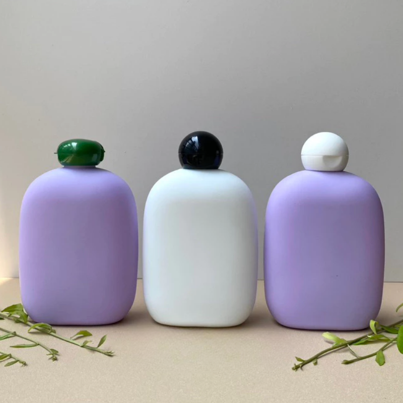 ขวดเจลอาบน้ำพลาสติก HDPE เคลือบ300มล. ฝาขวดปั๊มโลชั่นแบบแบนสำหรับครีมแชมพูบรรจุภัณฑ์เครื่องสำอางหลากสีตามสั่ง