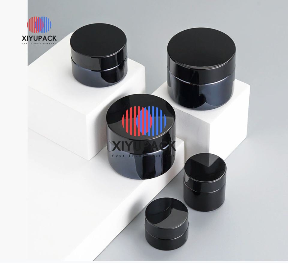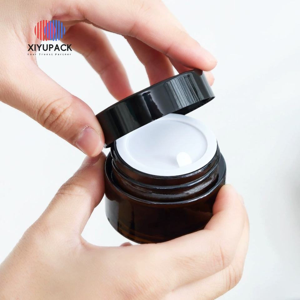 ขวดแก้วสีชาขนาด 30 มล. 50 กรัม สำหรับเครื่องสำอาง ฝาพลาสติกสีดำ ปากกว้าง ผนังหนา พิมพ์ลาย สำหรับบรรจุน้ำมันใส่ผม เซรั่มบำรุงผิว