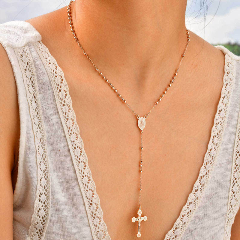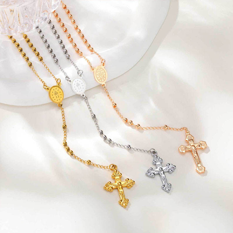 สร้อยคอแฟชั่นประดับลูกปัดสแตนเลสสตีล 316L ชุบทอง 14K 18K PVD สร้อยคอเครื่องประดับชั้นดี สร้อยคอโรซารี่สำหรับผู้หญิง
