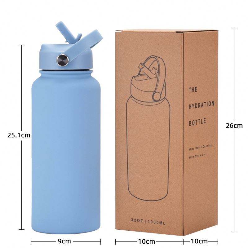 กระติกน้ำสุญญากาศสแตนเลสแบบกำหนดเอง ขนาด 32 ออนซ์ 1000 มล. สำหรับออกกำลังกายและตั้งแคมป์