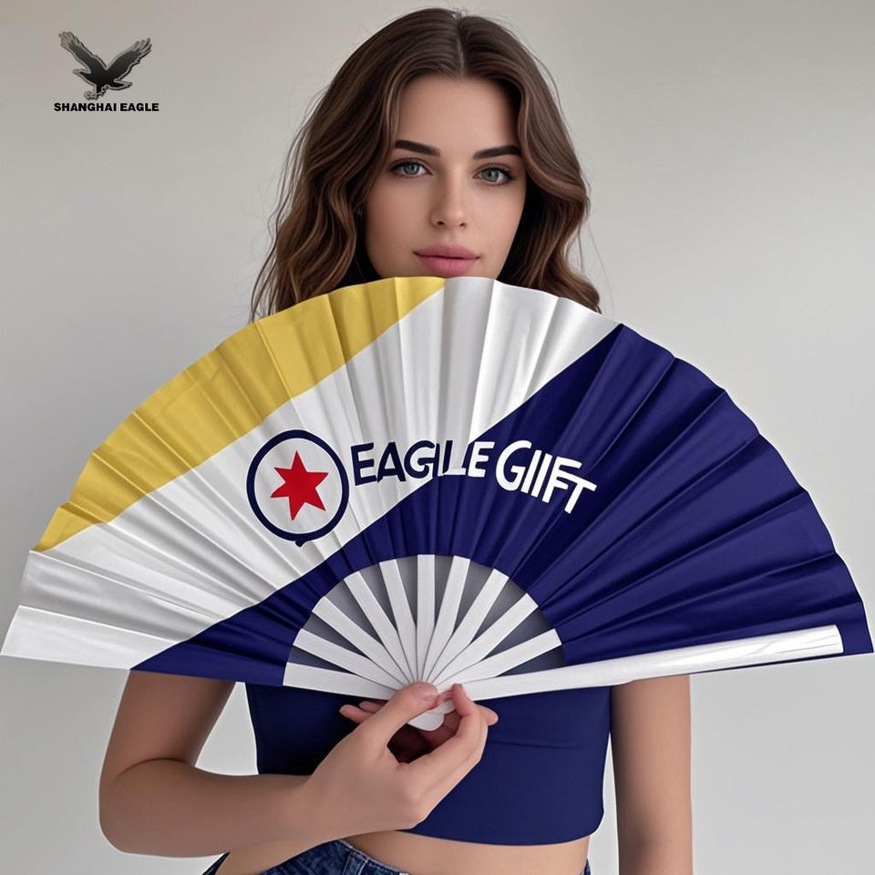 พัดมือพับได้พลาสติกสีสันสดใสไซส์ใหญ่33ซม. สำหรับผู้ชายผู้หญิงของขวัญเต้นรำตามเทศกาล